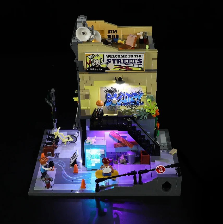 The lumibrick Skate Shop set is a brilliant set for all levels of ability. It’s one of the 5 lumibricks bestsellers for good reason, as both a starter city building set, or a modular that will fit nicely into an expert builders cityscape.