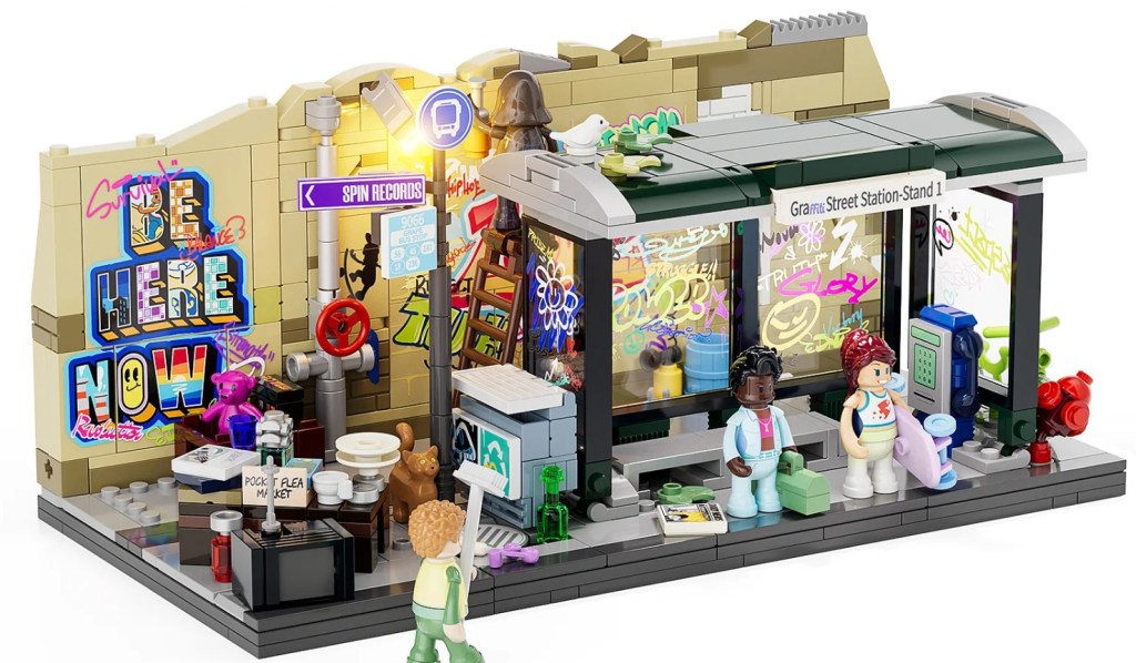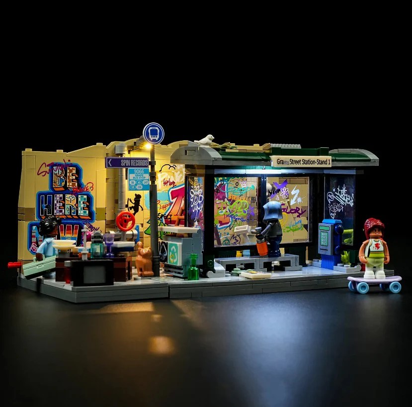 The Lumibricks Graffiti Bus Stop is fully compatible with any LEGO City and fits perfectly into an urban street theme. The brick quality is fantastic, and the light kit makes the whole thing pop. I love the fact that there is a street sign pointing to Spin Records for the Lumibricks Record store set. All around a fantastic set at an amazing price.